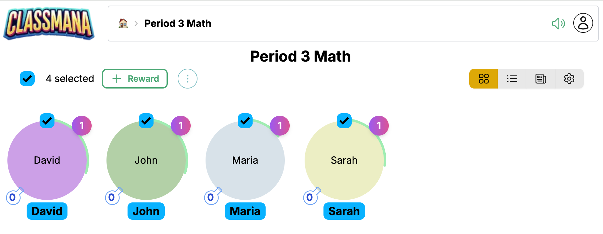 - Klik Hadiah untuk diterapkan pada semua siswa yang dipilih
