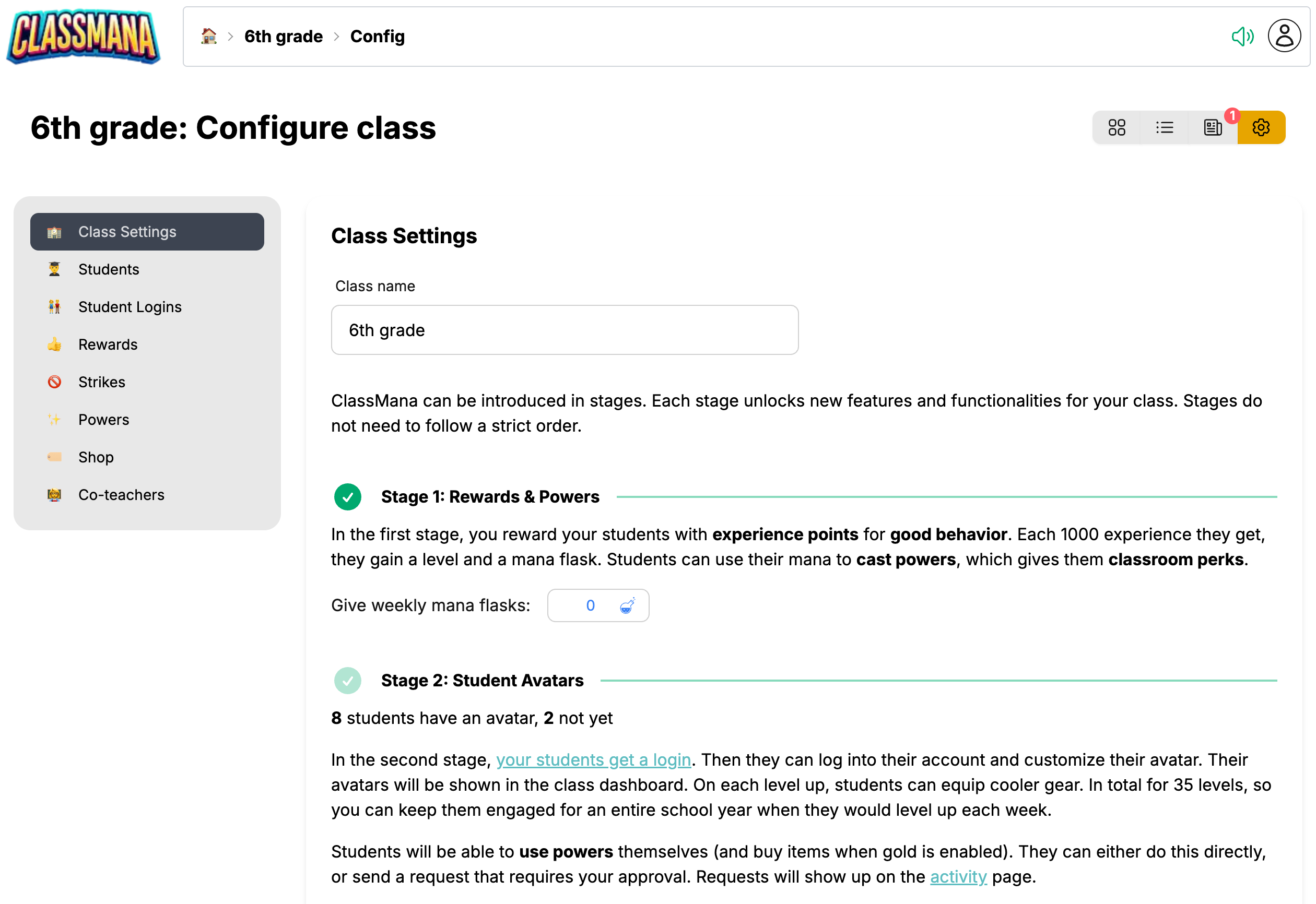 Ketika siswa masuk, mereka dapat menggunakan kekuatan dan membeli item toko langsung dari dashboard avatar mereka. Anda memutuskan apakah mereka dapat menggunakan item secara instan atau perlu meminta persetujuan Anda terlebih dahulu.